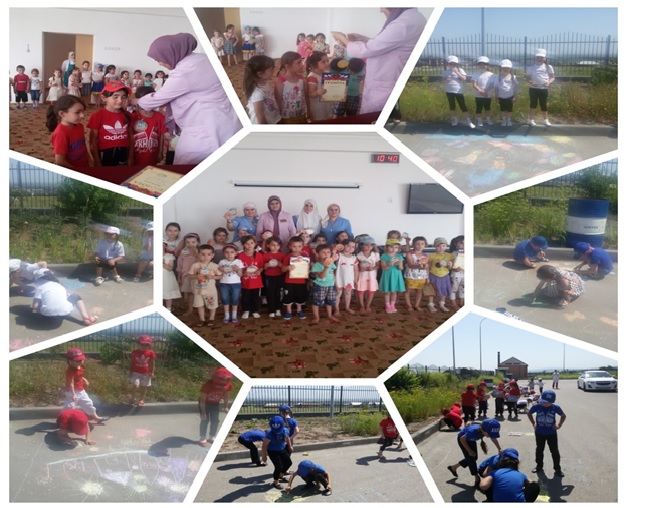 В 22 июня все дорожки дошкольного учреждения покрылись разноцветными и яркими рисунками, придуманные нашими детьми. На тему «Счастливое детство» мы увидели все, что окружает наших ребят: множество ярких солнечных лучей, красивых цветов, домов и многое другое.