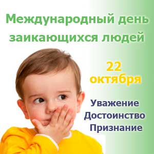 22 октября 1998 года по инициативе Международной ассоциации заикающихся был учрежден Международный день заикающихся людей. Это день логопедов, детских неврологов и всех, страдающих от этой болезни.