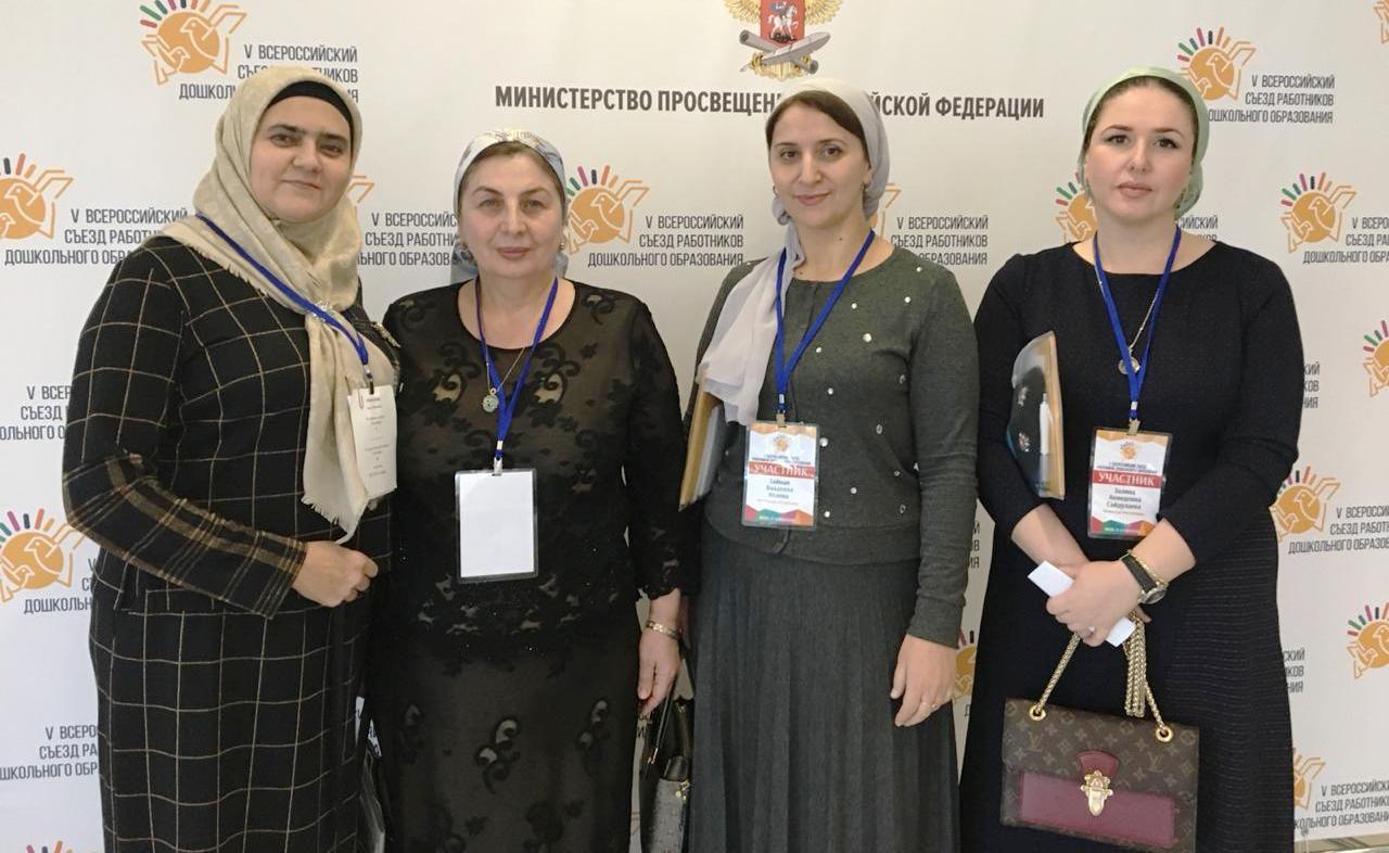 23.11.2018С 23 ноября 2018 года по 24 ноября 2018 года работники системы дошкольного образования Гудермесского муниципального района: главный специалист Управления Абдрахманова Ж.М. и заведующие МБДОУ «Детский сад № 1 «Радуга» Сайдулаева З.А., МБДОУ «Детский сад № 17 «Жемчужина» Атаева З.В., МБДОУ «им. С.Билимханова» Ахмадова З.Л. приняли участие в V Всероссийском съезде работников дошкольного образования.