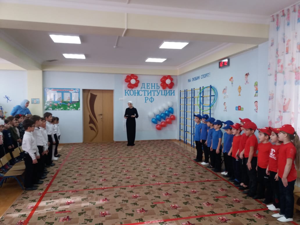 12.12.2018В нашем саду прошло мероприятие, посвященное Дню Конституции РФ. В начале праздника детьми старшей группы «А» была исполнена гимн РФ. Для проведения мероприятия был разработан план,- сценарий мероприятия. Детьми были прочитаны стихотворения по тематике мероприятия, исполняны песни, танцы. Дети были нарядно одеты.