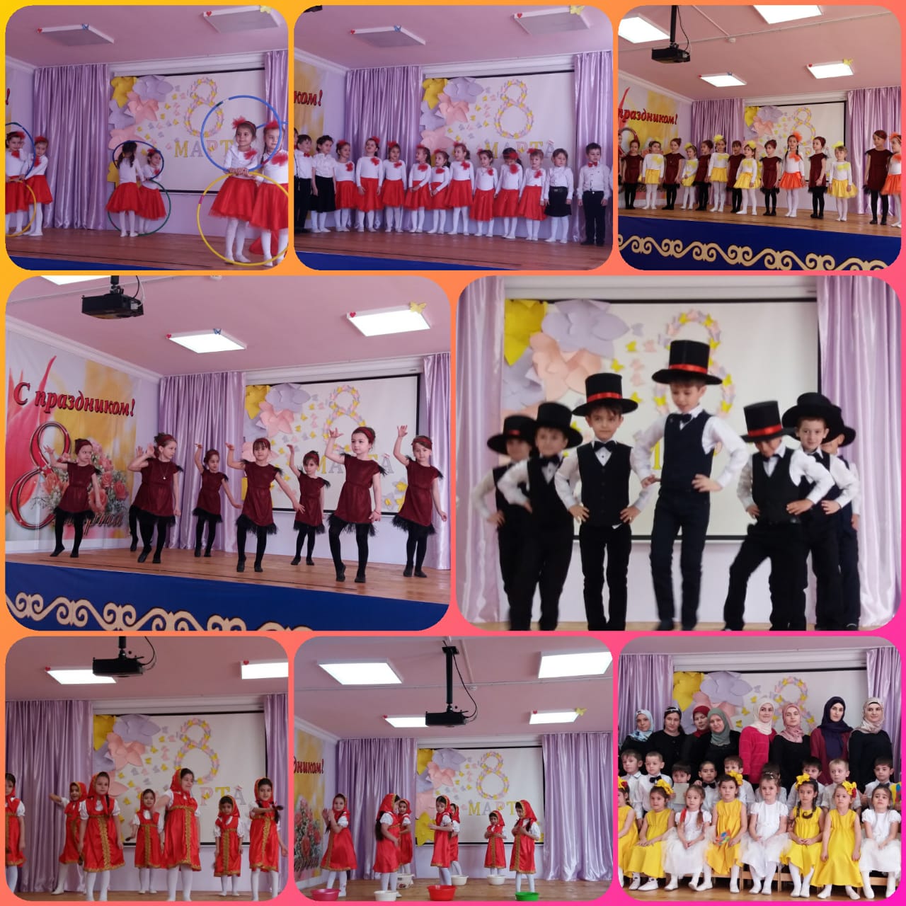 В конце мероприятий воспитанники вручали подарки, изготовленные своими руками гостям и родителям в честь праздника, родители остались довольны выступлением воспитанников. Дети были нарядно одеты. Настроение у детей было бодрое, веселое.